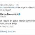 育碧在推特上解答用户提问时确定,幽灵行动:断点(xian)即使是在单人模式也需要全程联网