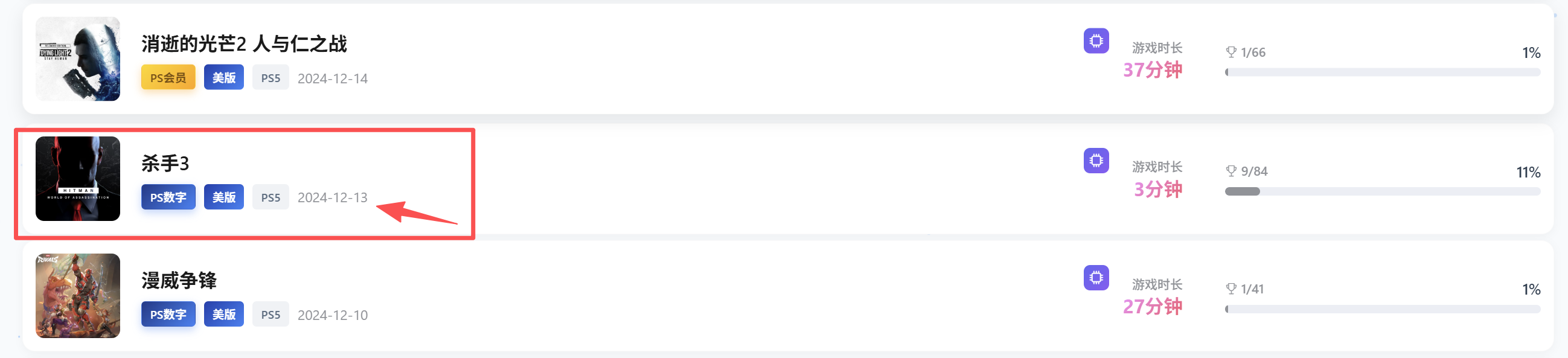 我玩过的游戏里有些美版欧版的老游戏会这样,比如荒野大镖客初代和生化危机代号维罗妮卡,都是奖杯列表正常但是游玩记录里不显示时间也不显示游戏