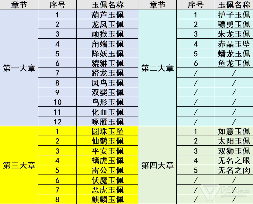玉佩的话,一共31个,我把每一章节结束的时候,所应该获得玉佩数量和名字做了一张EXCEL表格,大家每打一个章节,大家去背包数数看吧,差哪个就去找。![]() |
