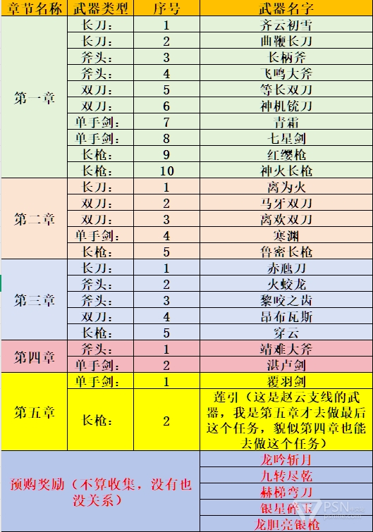 | 【预购奖励的武器不算收集的,大家放心好了,我继续画一张EXCEL表格给大家看,每个章节结束前,自己核对一下,哈哈】 |