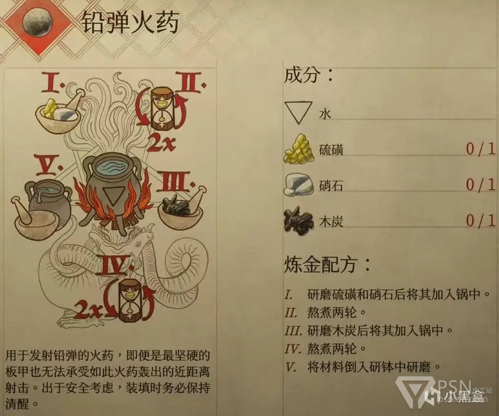 喝醉了酒之后炼金做火药,做到最后一步装袋环节挑杯(别喝太多,不然还没做完就晕了)配方如上图