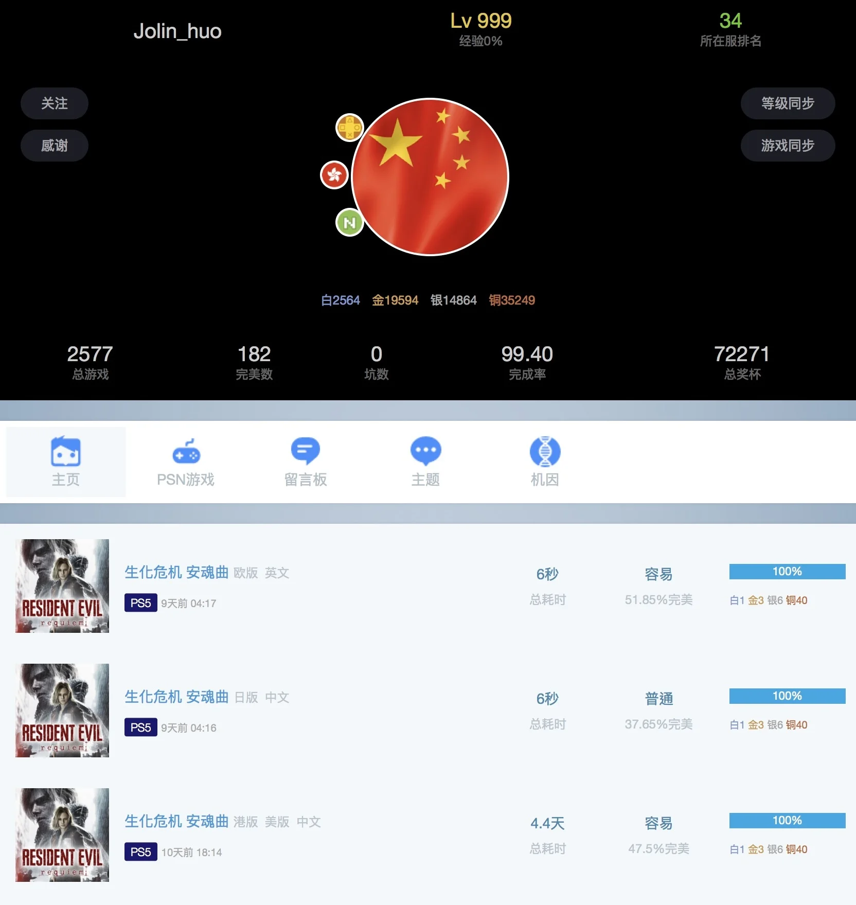 @bryanfan1980 这种管不到,也不好举证,常规改白金是利用其他玩家的白金存档(往往是很多个获得奖杯前的存档)来实现快速白金,PS4由于破解可以直接用别人存档,PS5现在应该是用游客账号,备份还原的形式。