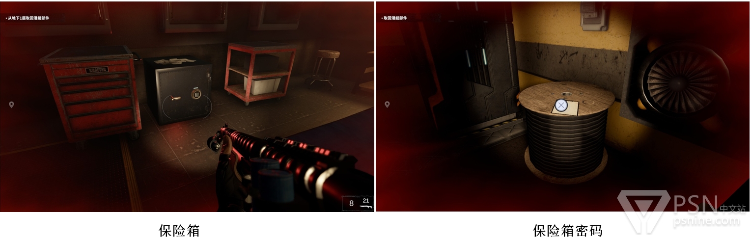 ____保险箱位置:前往“挖掘区”区域的大门前。保险箱密码:通过游泳潜水上岸后,在一个办公室内的电脑上。