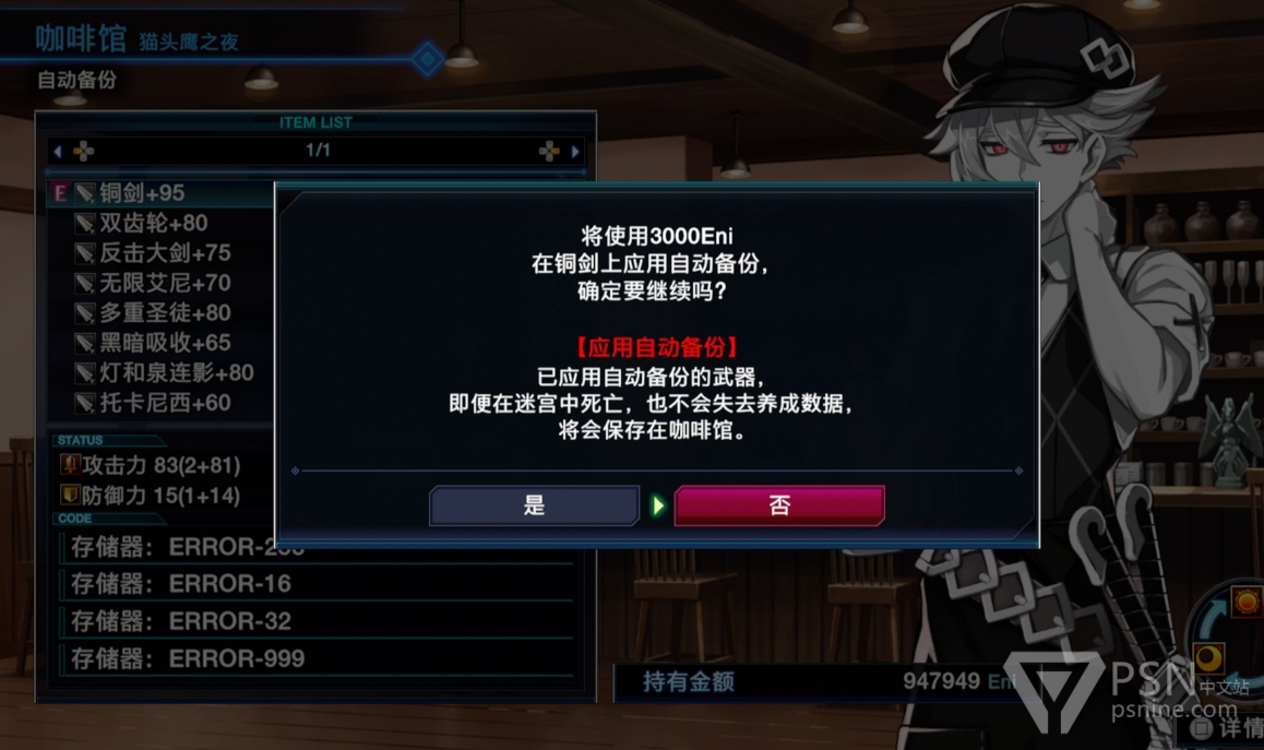 以上方法仅仅是前期,当你后面累积了足够多的点数时,就不需要这些补丁了。在确保你是normal难度下,直接使用咖啡店的“自动备份功能”,选一把点数多的武器,使用自动备份