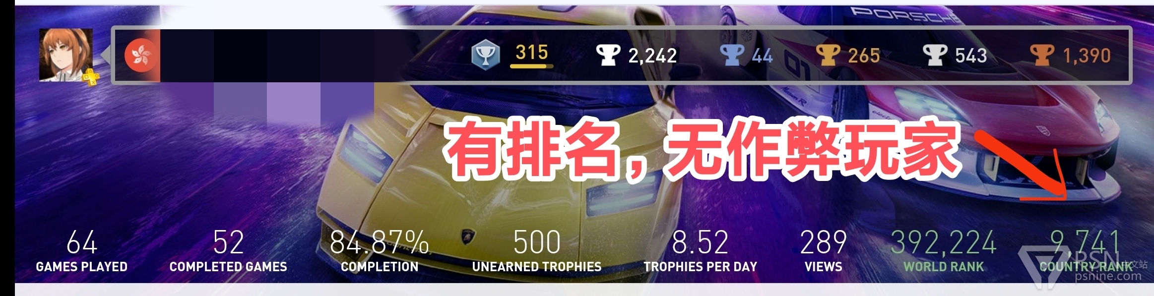 判断一个奖杯玩家的奖杯是否是作弊得来,最基本的方法就是到PSNP查询该玩家是否有排名。排名在多少不重要,但是有没有排名很重要。
