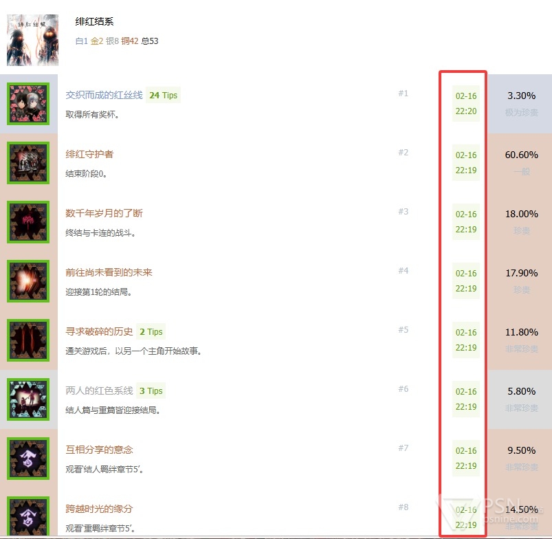 因此回到上述时间轴话题上,如果发现有的玩家奖杯获取时间轴是全部一样的,1秒内便获得了所有奖杯,他不一定是作弊修改,仅仅是使用“秒白”功能水了一个白金而已。如下图: