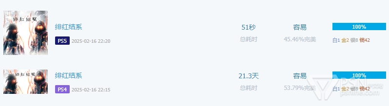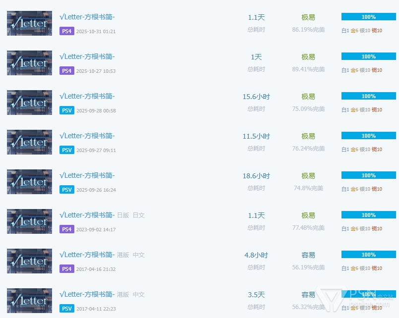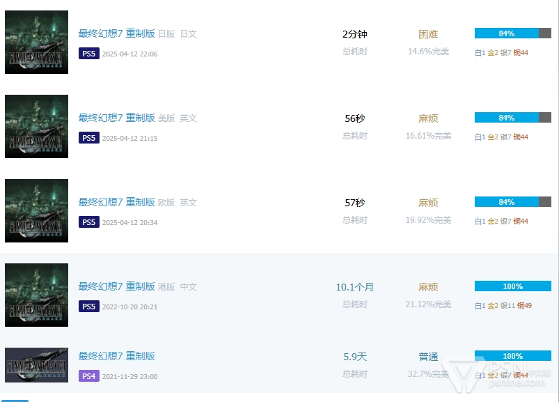 所以你会在一个奖杯玩家的列表里看到如下景象,很多游戏都是两个版本叠在一起: