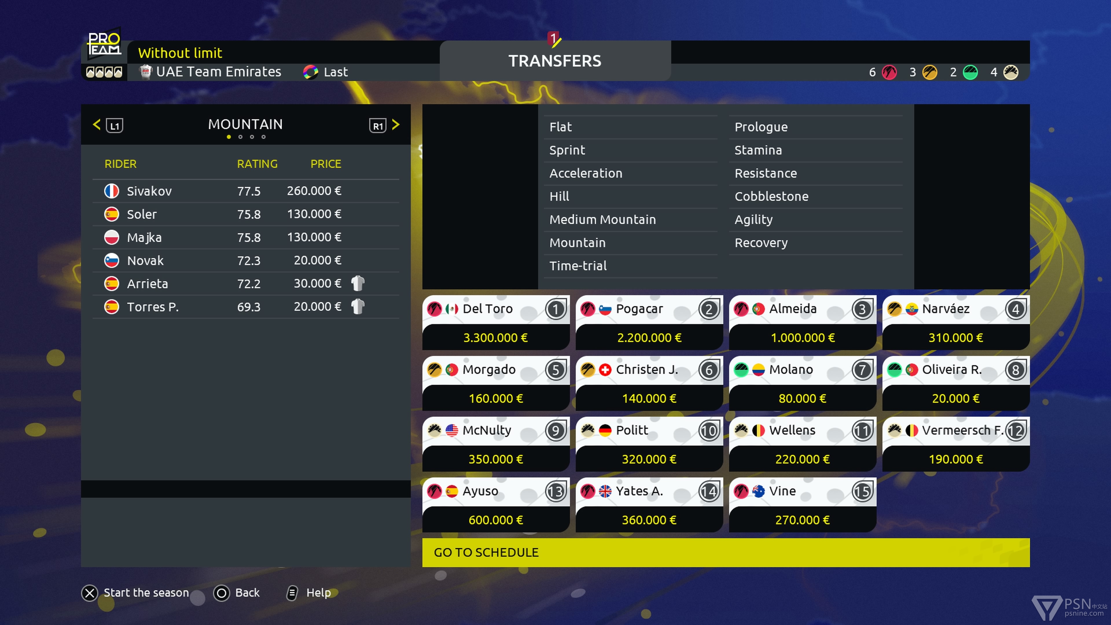 进入Pro Team模式后,按照以下设置开局,难度可以改为Amateur(新手难度),车队选择UAE Team Emirates。